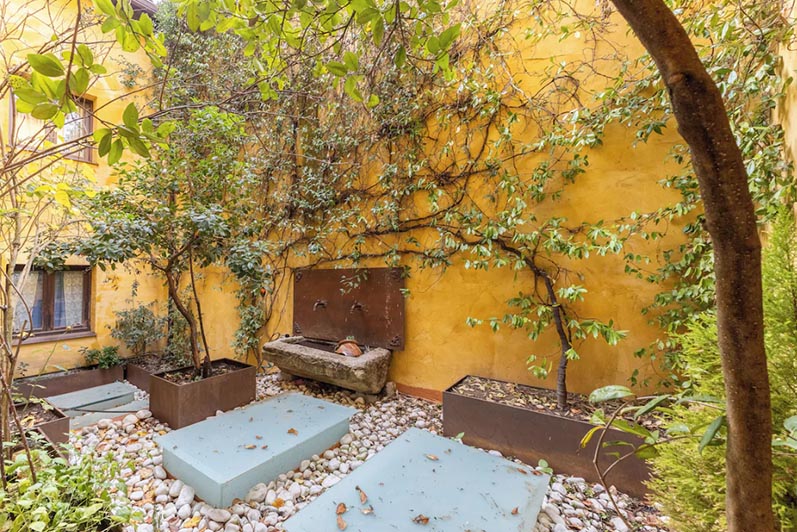 El apartamento cuenta con un amplio cuarto de baño con luz natural proveniente del patio, lo que refuerza su sensación de armonía y bienestar. Desde el dormitorio, se puede disfrutar del aroma de jazmín y flores blancas de laurel, convirtiendo cada despertar en una experiencia sensorial única.